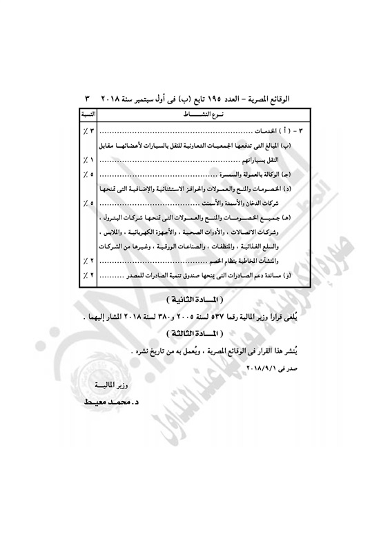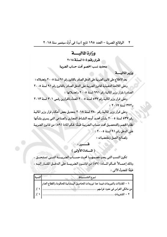 استثمار قرار وزاري بتحديد نسب الخصم تحت حساب الضريبة على الدخل الأربعاء 05 سبتمبر 2018 - 02:56 م 9/5/2018 2:56:14 PM محمد معيط وزير المالية المصدر - خاص طباعة شارك نشرت الوقائع المصرية، فى العدد رقم 195 تابع "ب" الصادر بتاريخ 1 سبتمبر 2018، قرار وزارة المالية قرار رقم 405 لسنة 2018 بشأن تحديد نسب الخصم تحت حساب الضريبة.نص القرار: طباعة شارك تابع المصدر علي جوجل نيوز تطبيق نبض