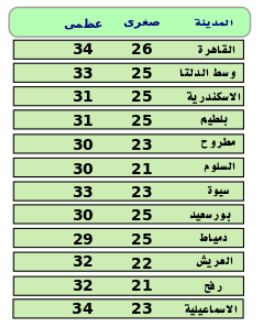وفيما يلي بيان بدرجات الحرارة غدًا: