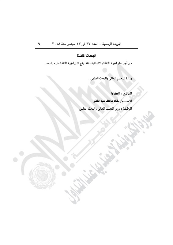 قرار جمهورى بالموافقة على تعديل اتفاقية المساعدة الأمريكية للتعليم العالى