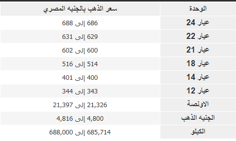 وفيما يلى بيان بأسعار الذهب اليوم: