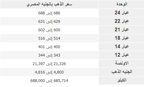 وفيما يلى بيان بأسعار الذهب اليوم: