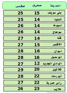 وفيما يلي بيان بدرجات الحرارة المتوقعة غدًا على محافظات ومدن مصر: