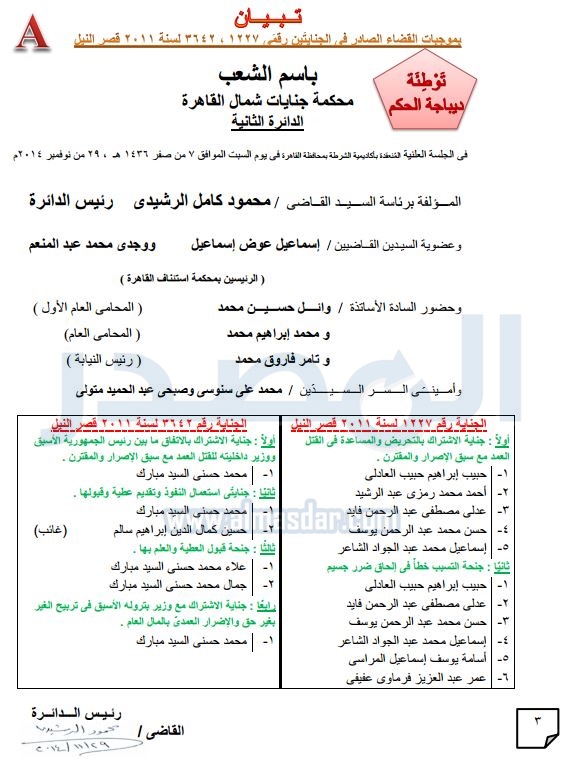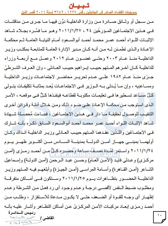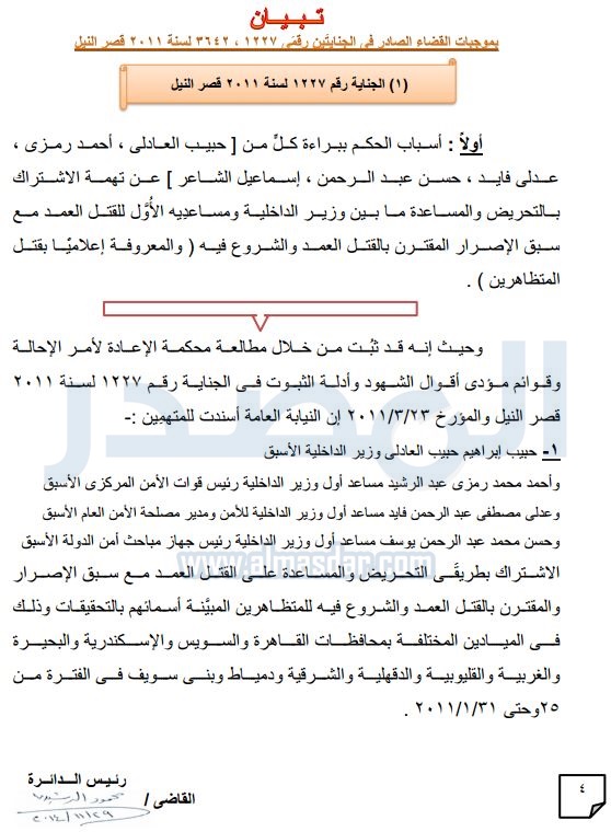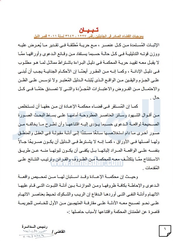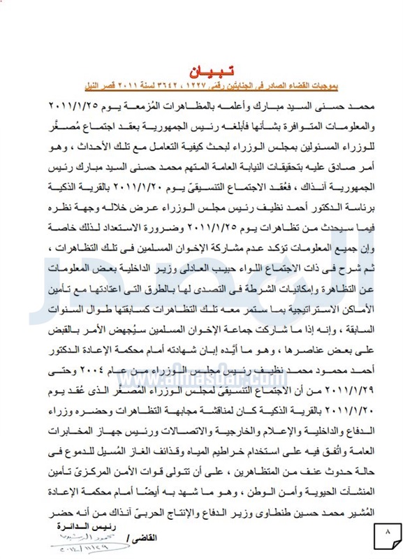 ننشر حيثيات الحكم ببراءة مبارك في محاكمة القرن