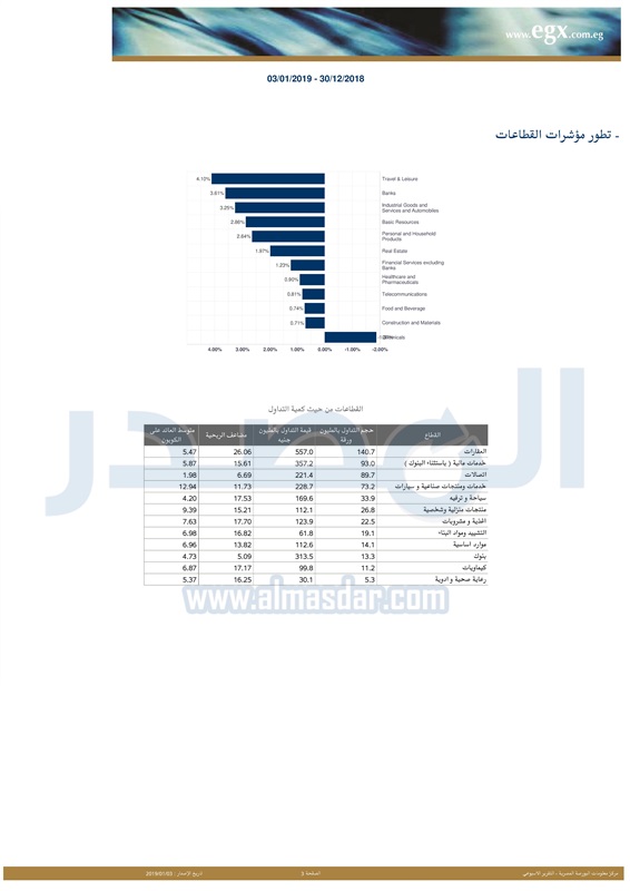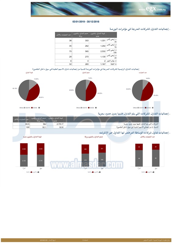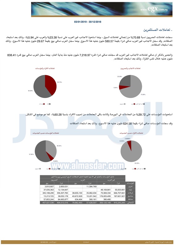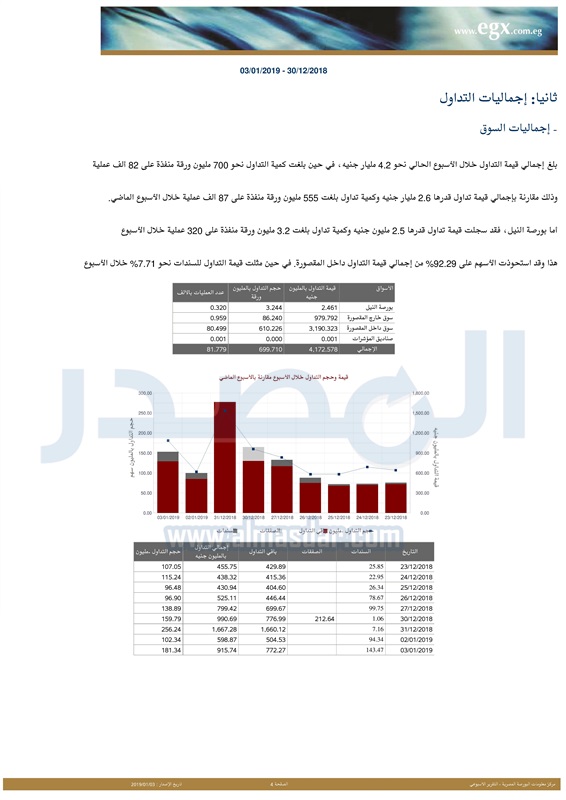 البورصة تربح 16,3 مليار جنيه خلال تعاملات الأسبوع الأول من 2019