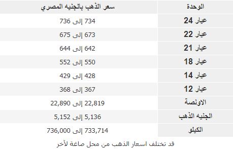 سعر الذهب اليوم الأحد 6 يناير 2019