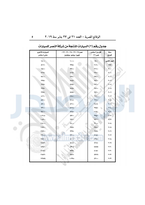 قرار وزارى بتحديد قيمة المحررات الخاصة بمركبات النقل السريع