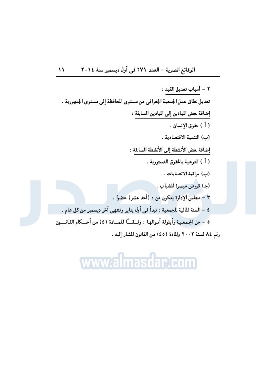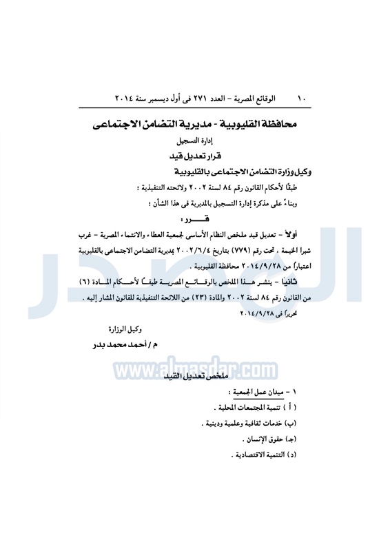 أخبار مصر تعديل قيد ملخص النظام الاساسى لـ"جمعية العطاء والانتماء" المصرية الإثنين 01 ديسمبر 2014 - 03:08 م 12/1/2014 3:08:53 PM وزارة التضامن الاجتماعى طباعة شارك طباعة شارك تابع المصدر علي جوجل نيوز تطبيق نبض