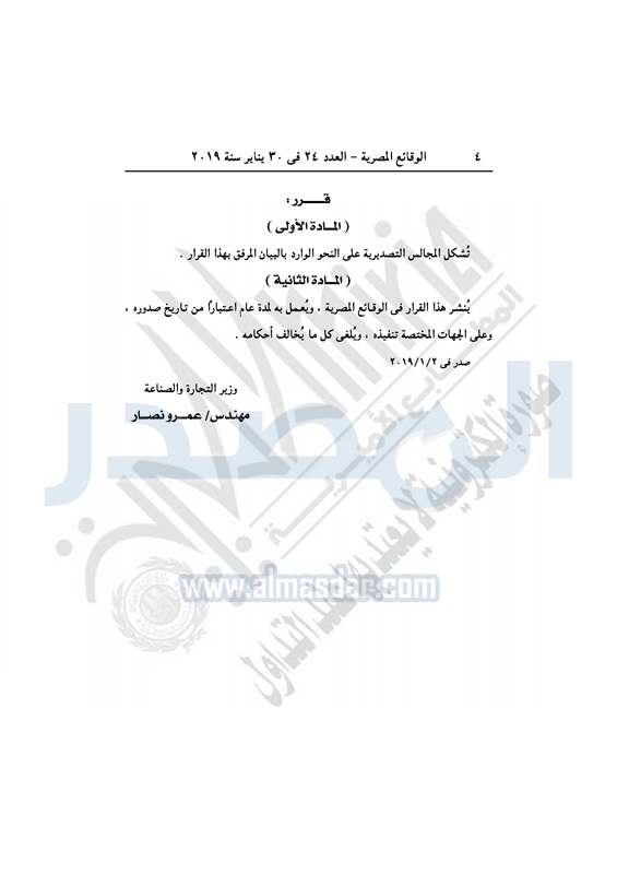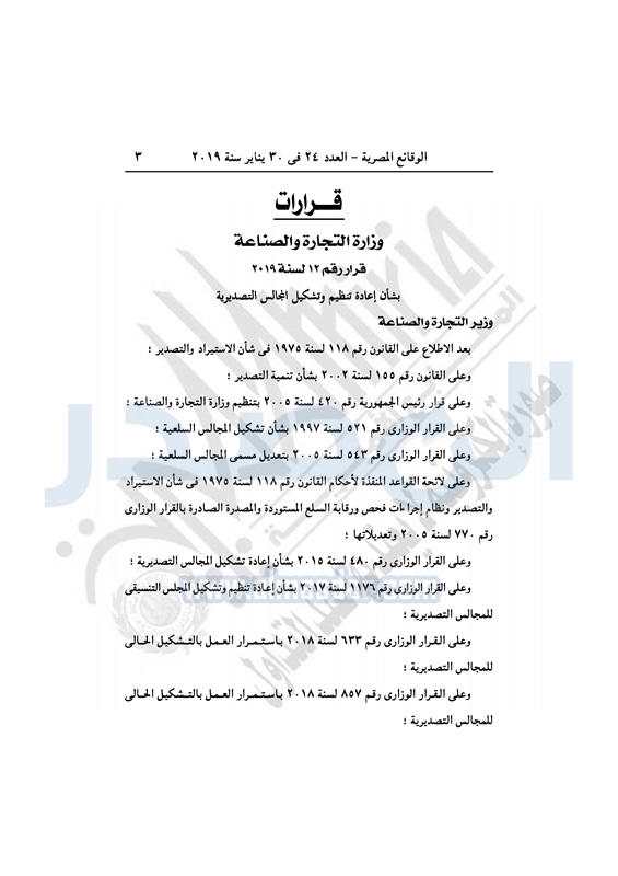 أسواق قرار وزاري بإعادة تنظيم وتشكيل المجالس التصديرية الأربعاء 30 يناير 2019 - 10:18 ص 1/30/2019 10:18:00 AM عمرو نصار وزير التجارة والصناعة المصدر - خاص طباعة شارك نشرت الوقائع المصرية، في العدد رقم 24 الصادر في 30 يناير 2019، قرار وزارة التجارة والصناعة رقم 12 لسنة 2019، بشأن إعادة تنظيم وتشكيل المجالس التصديرية.نص القرار: طباعة شارك وزاره التجاره والصناعه قرار الوقائع المصرية المجالس التصديرية تابع المصدر علي جوجل نيوز تطبيق نبض