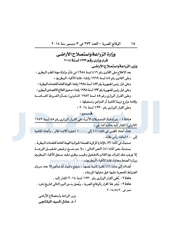 أخبار مصر قرار"وزير الزراعة واستصلاح الاراضى" بإدخال بعض التعديلات على القرار الوزارى رقم 58 الأربعاء 03 ديسمبر 2014 - 11:39 ص 12/3/2014 11:39:00 AM وزير الزراعة واستصلاح الاراضى عادل السيد المصدر - خاص طباعة شارك طباعة شارك تابع المصدر علي جوجل نيوز تطبيق نبض