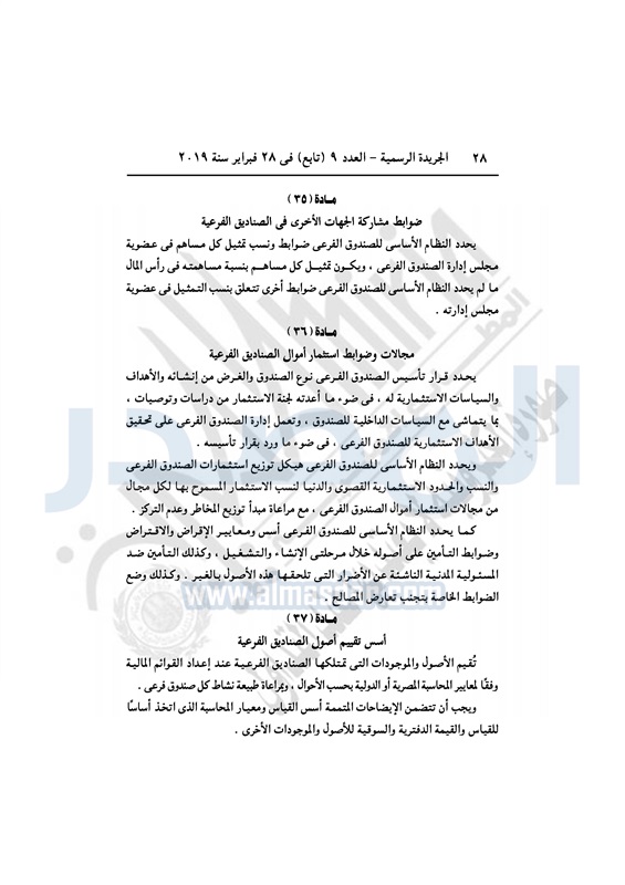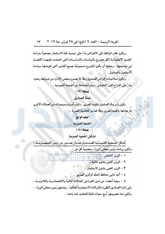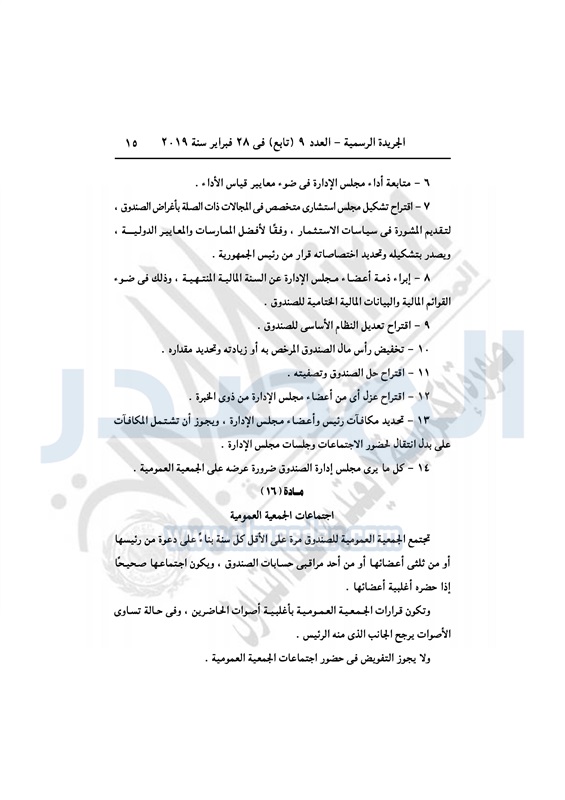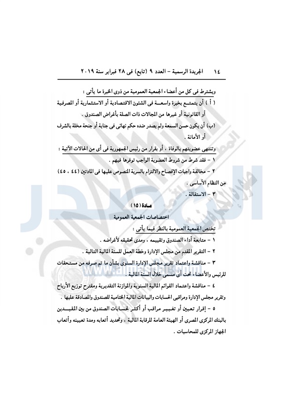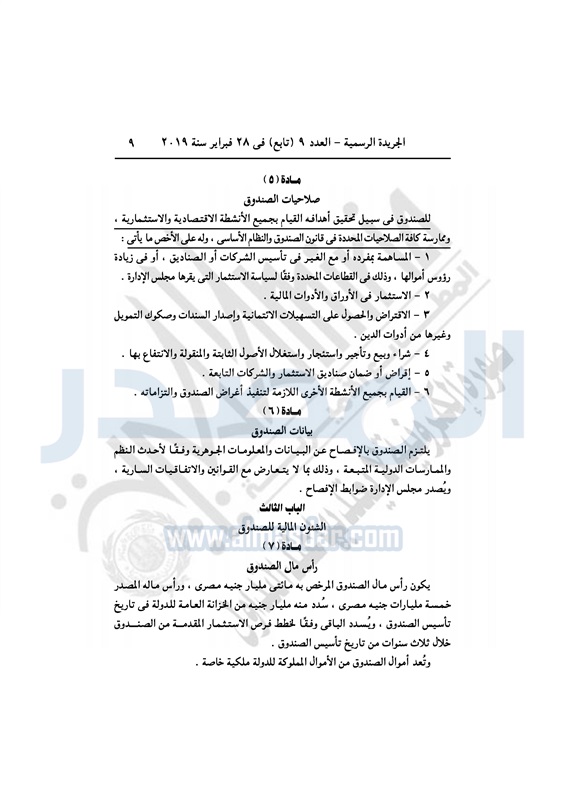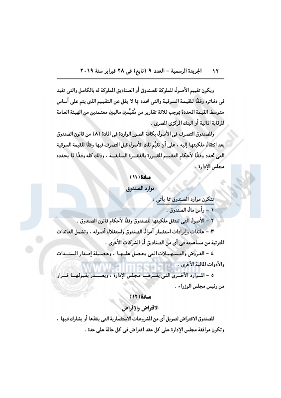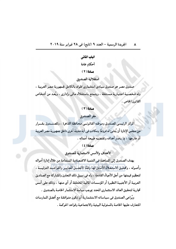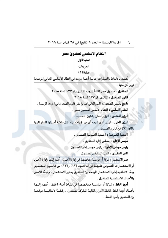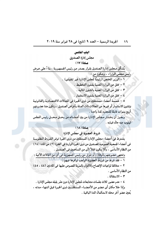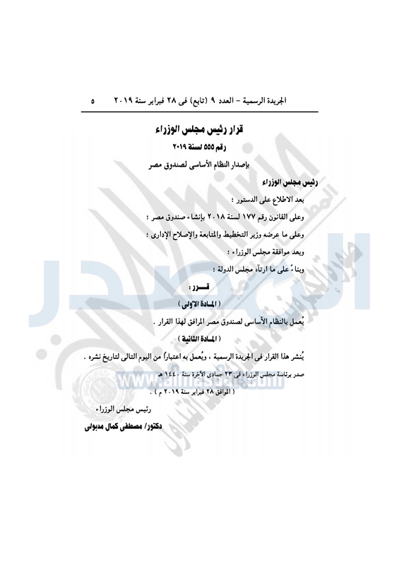 استثمار «الوزراء» يصدر النظام الأساسى لصندوق مصر السبت 02 مارس 2019 - 05:11 م 3/2/2019 5:11:57 PM مصطفى مدبولي رئيس مجلس الوزراء المصدر - خاص طباعة شارك نشرت الجريدة الرسمية، في العدد رقم 9 «تابع» الصادر بتاريخ 28 فبراير2019، قرار رئيس مجلس الوزراء رقم 555 لسنة 2019،بشأن إصدار النظام الأساسي لصندوق مصر.وفيما يلي نص القرار: طباعة شارك مجلس الوزراء قرار صندوق مصر الجريدة الرسمية تابع المصدر علي جوجل نيوز تطبيق نبض