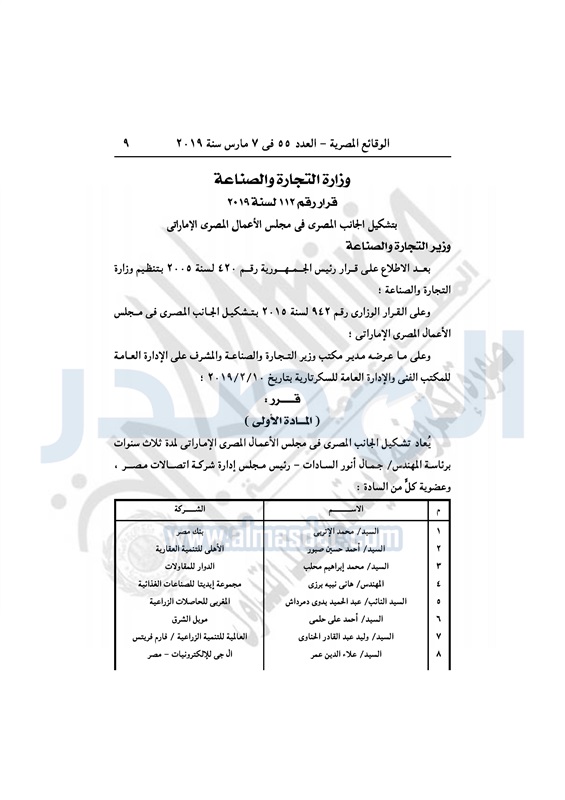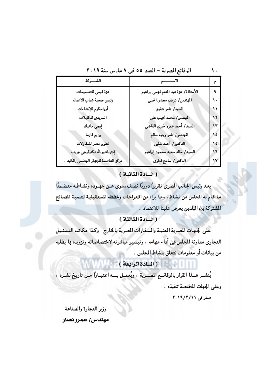 أسواق قرار وزاري بتشكيل الجانب المصري في مجلس الأعمال «الإماراتي» الخميس 07 مارس 2019 - 11:36 ص 3/7/2019 11:36:00 AM المهندس عمرو نصار وزير التجارة والصناعة المصدر - خاص طباعة شارك نشرت الوقائع المصرية في العدد 55 بتاريخ 7 مارس 2019، قرار وزارة التجارة والصناعة رقم 112 لسنة 2019، بشأن تشكيل الجانب المصري في مجلس الأعمال المصري الإماراتي.وفيما نص القرار: طباعة شارك وزارة التجارة قرار الوقائع تابع المصدر علي جوجل نيوز تطبيق نبض
