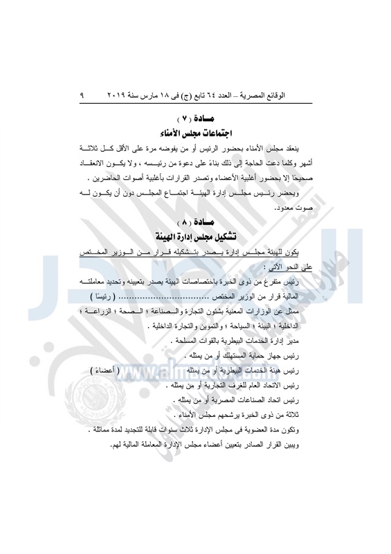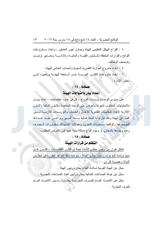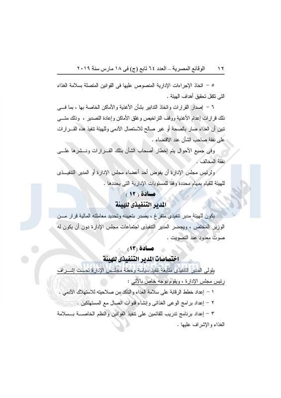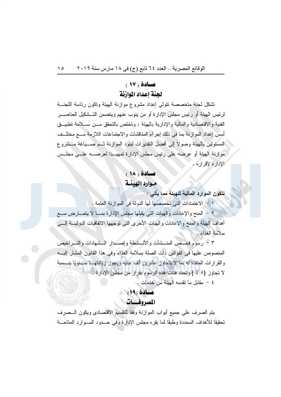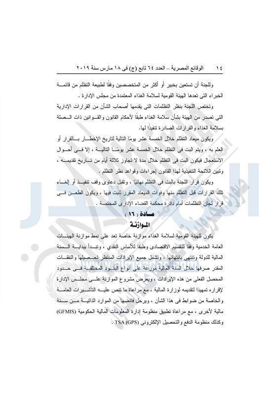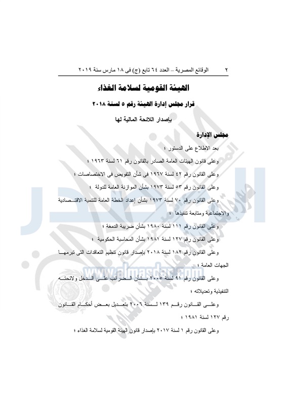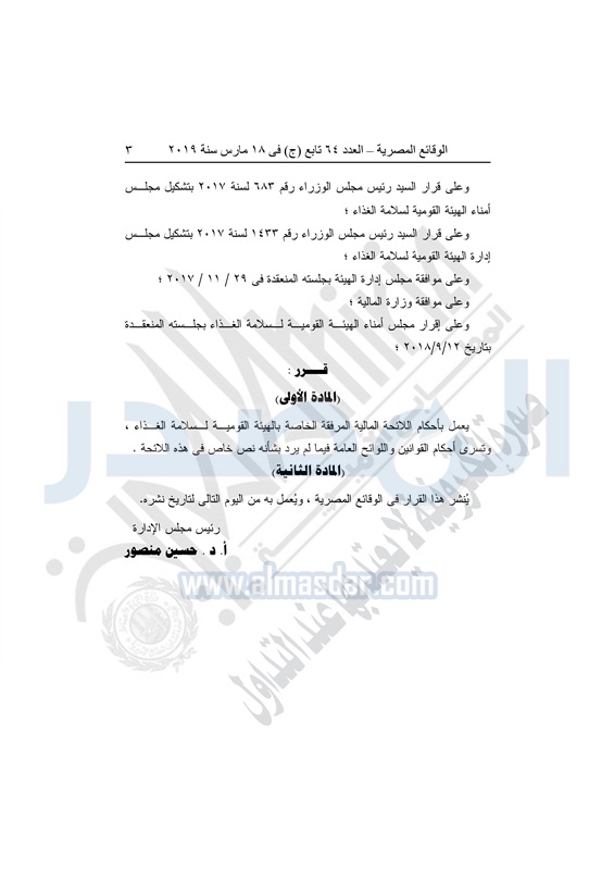 أسواق «سلامة الغذاء» تُصدر اللائحة المالية الخميس 21 مارس 2019 - 04:13 م 3/21/2019 4:13:00 PM حسين منصور رئيس الهيئة القومية لسلامة الغذاء المصدر - خاص طباعة شارك نشرت الوقائع المصرية في العدد 64 تابع «ج» بتاريخ 18 مارس 2019، قرار مجلس إدارة الهيئة القومية لسلامة الغذاء رقم 5 لسنة 2018، بشأن إصدار اللائحة المالية لها.وفيما يلي نص القرار: طباعة شارك حسين منصور الوقائع المصرية الهيئة القومية لسلامة الغذاء تابع المصدر علي جوجل نيوز تطبيق نبض