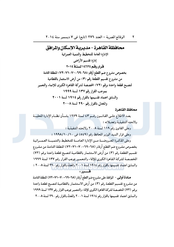 عقارات "التنمية العمرانية "تضم 5 قطع ارضى للاستثمار بـ "القطامية " الثلاثاء 09 ديسمبر 2014 - 11:53 ص 12/9/2014 11:53:00 AM جلال سعيد محافظ القاهرة المصدر - خاص طباعة شارك طباعة شارك تابع المصدر علي جوجل نيوز تطبيق نبض