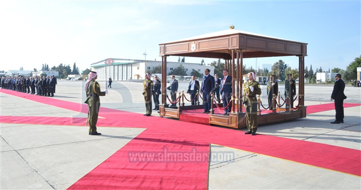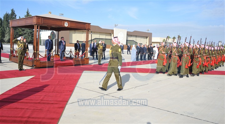 وقد كان فى الاستقبال رئيس وزراء الأردن ورئيس مجلس الأعيان ورئيس مجلس النواب ورئيس المجلس القضائى ورئيس الديوان الملكى الهاشمى وعدد من الوزراء ومستشارى جلالة الملك ورؤساء الأفرع الرئيسية للقوات المسلحة والأمن، كما كان فى الاستقبال السفير المصرى فى عمان وأعضاء السفارة المصرية بالإضافة إلى سفير الأردن فى القاهرة والسفراء العرب المعتمدين لدى المملكة.
