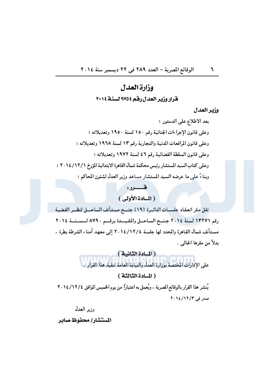 محافظات وزير "العدل "يقرر نقل جلستين إلى اماكن اخرى الإثنين 22 ديسمبر 2014 - 01:06 م 12/22/2014 1:06:00 PM محفوظ صابر وزير العدل المصدر - خاص طباعة شارك طباعة شارك تابع المصدر علي جوجل نيوز تطبيق نبض