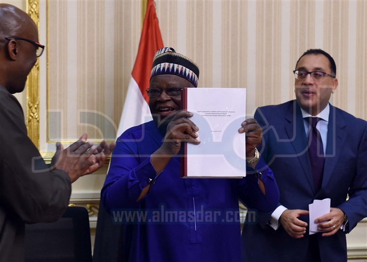 وتقدم البروفيسور إبراهيم جمبارى نيابة عن بعثة المراجعة بالتهنئة إلي الرئيس عبدالفتاح السيسي، رئيس الجمهورية علي المجهود الضخم الذي تبذله الدولة المصرية لتنفيذ برنامجها للإصلاح الاقتصادي والإجتماعي، فضلاً عن مشروعاتها القومية الجاري تنفيذها علي مستوي الجمهورية، مشيداً بقيام الحكومة المصرية بإعداد تقرير التقييم الذاتي وتقديمه إلي الآلية، وهو ما يُؤكد علي جدية الدولة المصرية وتطلعها إلي الإرتقاء بآفاق التعاون مع الآلية ومع اشقائها الأفارقة إلي أرحب المستويات بهدف تحقيق مصالح مشتركة للشعوب الأفريقية.