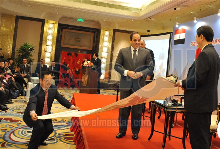 كما أشار الرئيس إلى ترحيب مصر بمبادرة الرئيس الصينى لإحياء طريق الحرير البرى والبحرى، ودور هذه المبادرة فى تعزيز التعاون الثقافى بين الدول الواقعة على طول طريق الحرير والتى يأتى على رأسها مصر لكونها معبراً هاماً بين الشرق والغرب وبين آسيا وأفريقيا، فضلا عما سيتيحه مشروع تنمية منطقة قناة السويس من آفاق واعدة للتعاون وفرصاً حقيقية لإحياء طريق الحرير البحري.