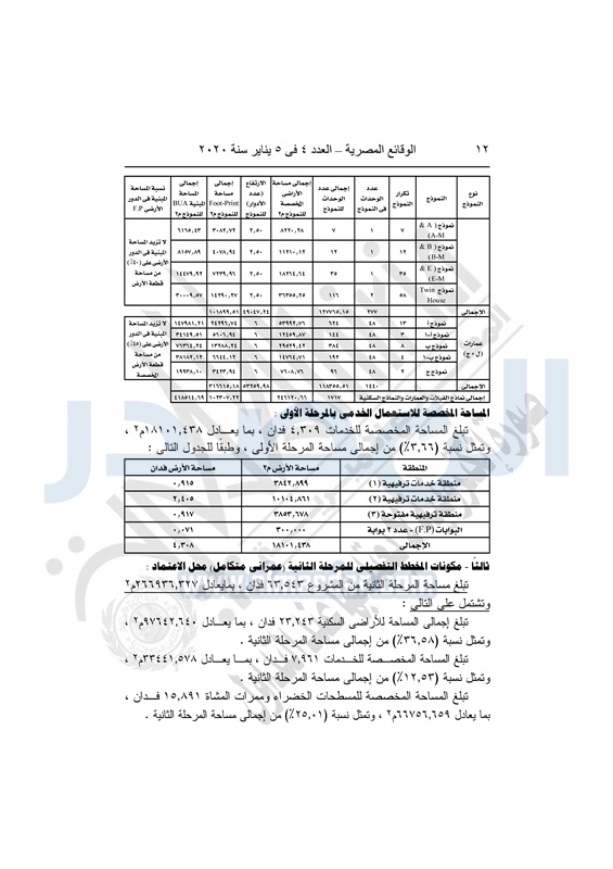 ويأتى ذلك لإقامة مشروع عمرانى متكامل بنسبة 80% وخدمات بنسبة 20%، بنظام المشاركة والصادر بشأنه القرار الوزارى رقم 670 لسنة 2017، والمعدل بالقرار الوزارى رقم 517 لسنة 2018، والقرار الوزارى رقم 888 لسنة 2018، وكذا اعتماد المخطط التفصيلي للمرحلة الرابعة من المشروع بنشاط عمراني متكامل بمساحة 76.128 فدان.