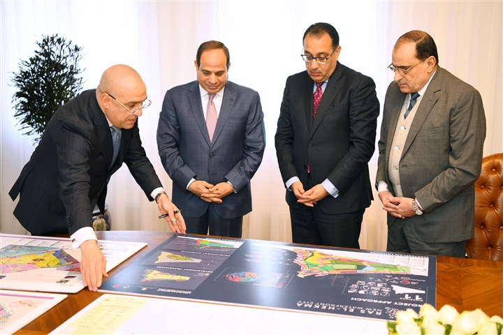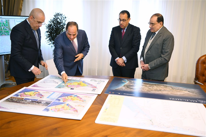 وتم التطرق إلى المخطط التنموي الاستراتيجي لجميع قطاعات ومحاور الساحل الشمالي، فضلاً عن الموقف التنفيذي لمدينتي رأس الحكمة الجديدة والسويس الجديدة، وكذا عدد من المشروعات بمدينة العلمين الجديدة، كالمدينة التراثية والأكاديمية العربية والحي اللاتيني والمنطقة الترفيهية والمجمعات السكنية.