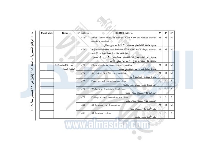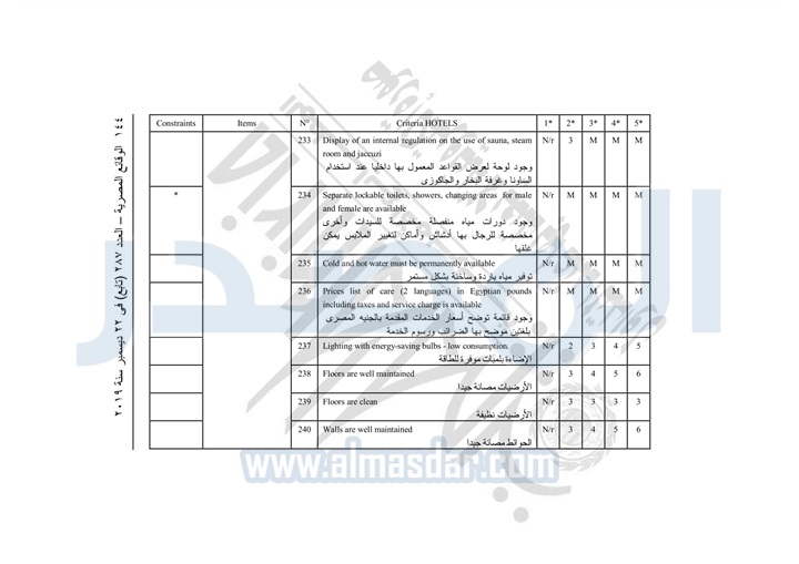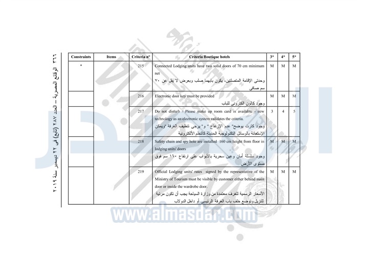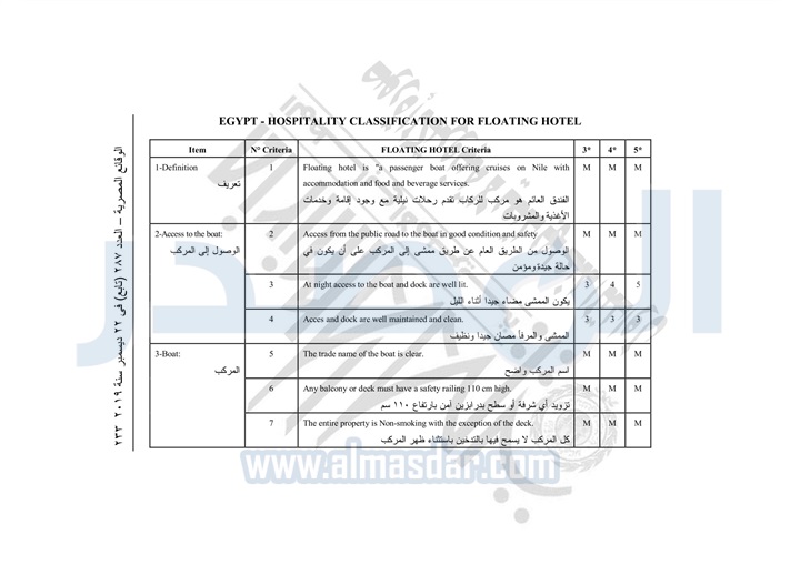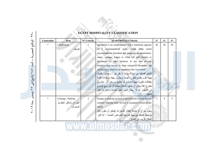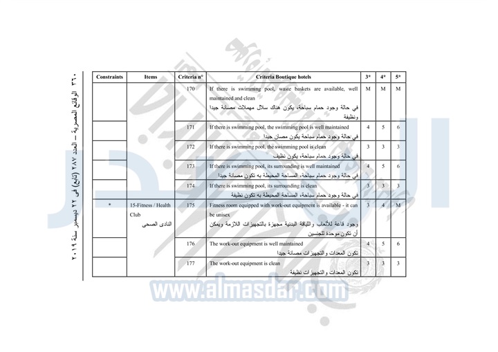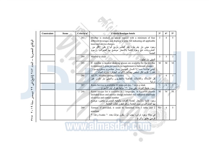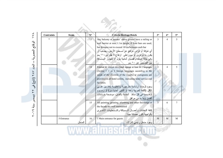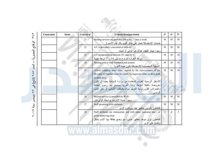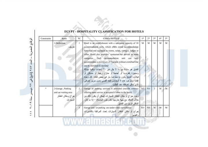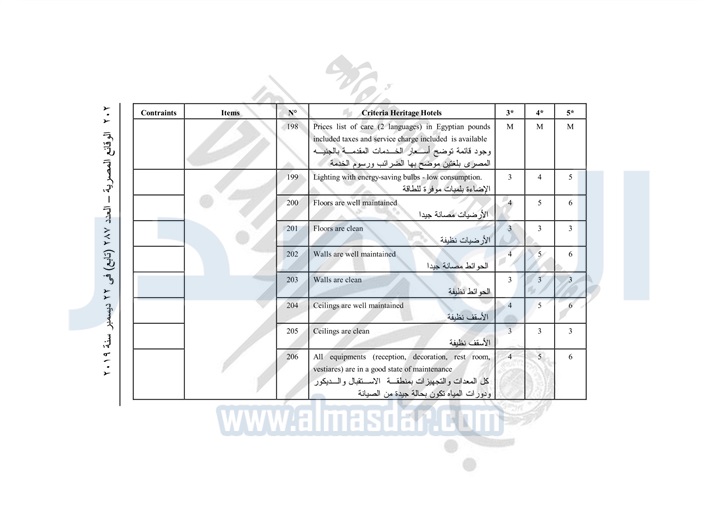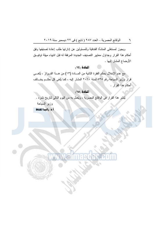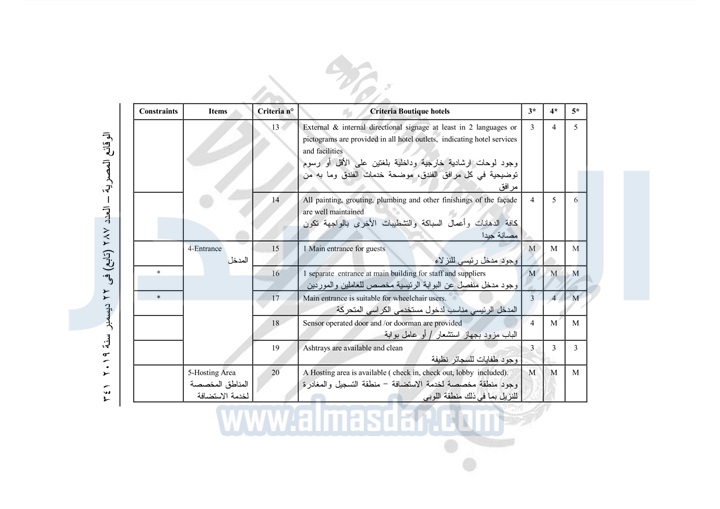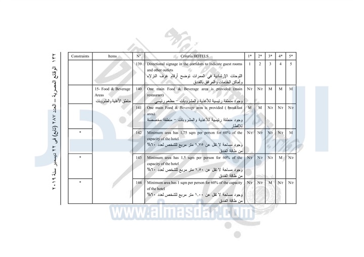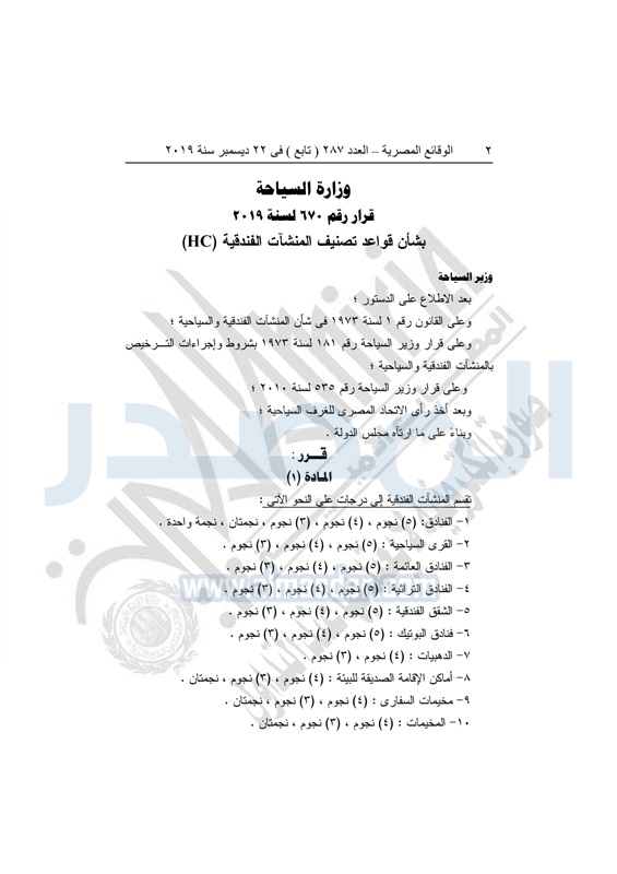 سياحة و طيران «السياحة» تصدر قواعد تصنيف المنشآت الفندقية الإثنين 17 فبراير 2020 - 06:14 م 2/17/2020 6:14:00 PM صورة أرشيفية المصدر - خاص طباعة شارك نشرت الوقائع المصرية في العدد رقم 287 تابع بتاريخ 22 ديسمبر 2019، قرار وزارة السياحة رقم 670 لسنة 2019، بشأن قواعد تصنيف المنشآت الفندقية (HC).وفيما يلي نص القرار: طباعة شارك تابع المصدر علي جوجل نيوز تطبيق نبض