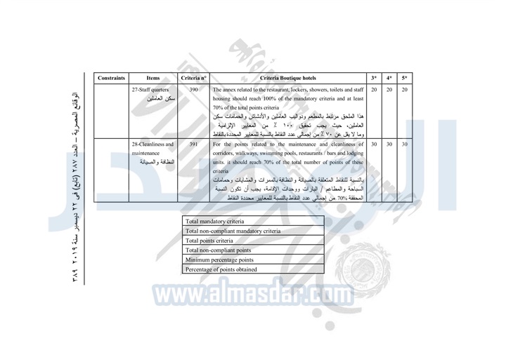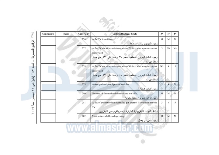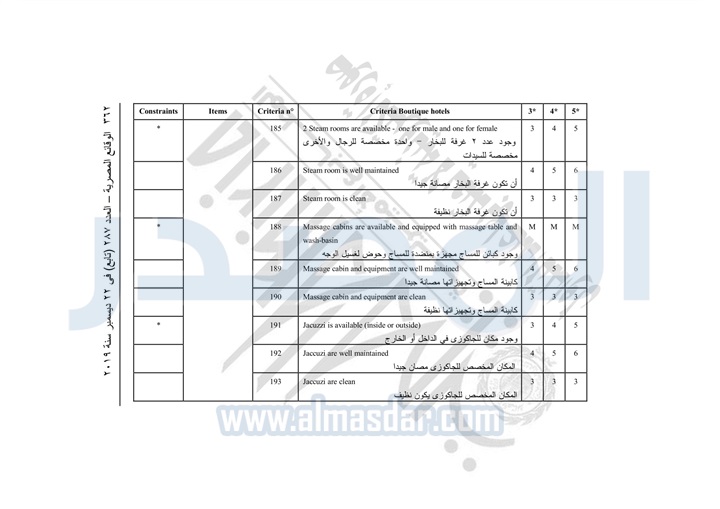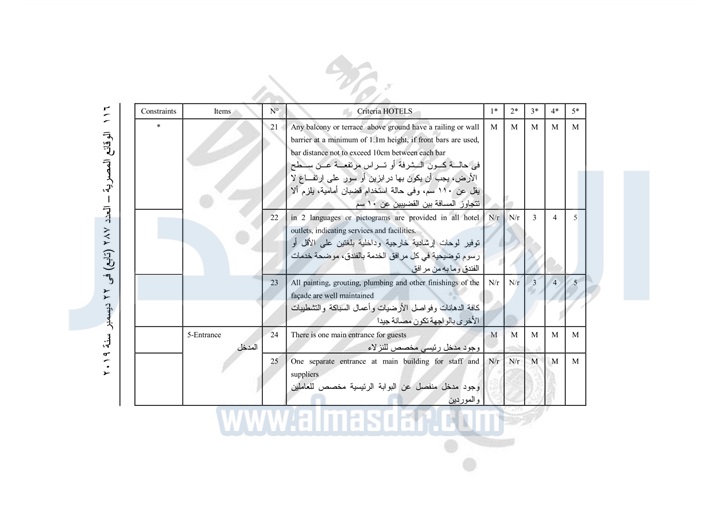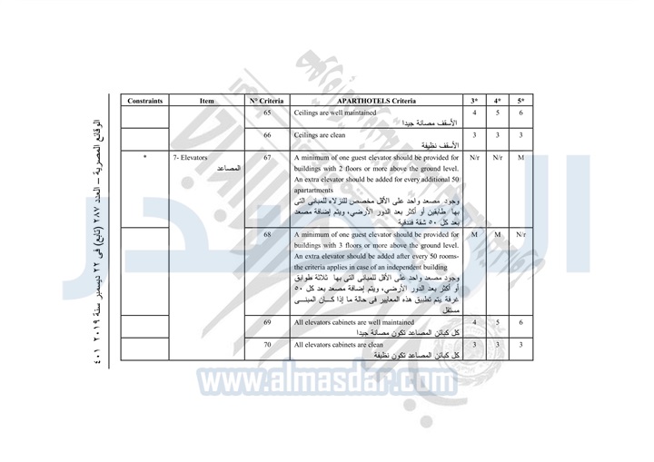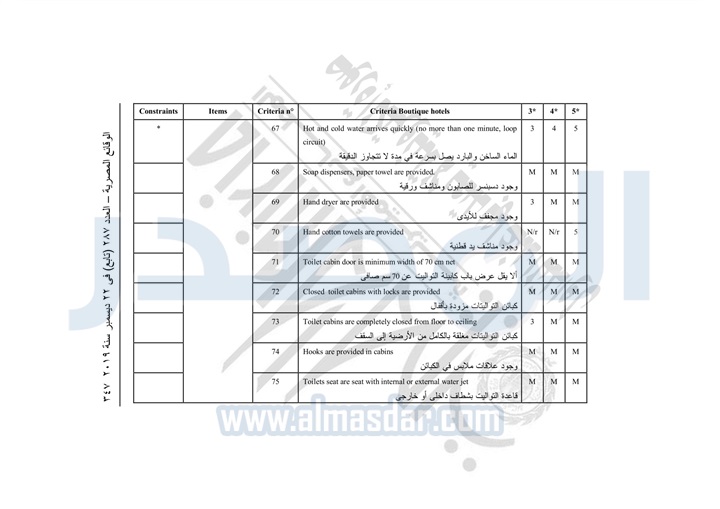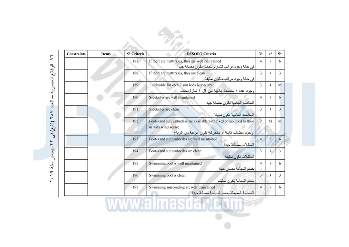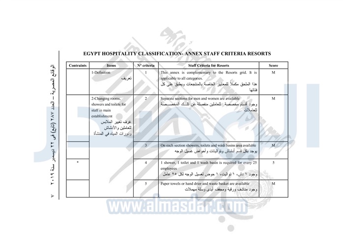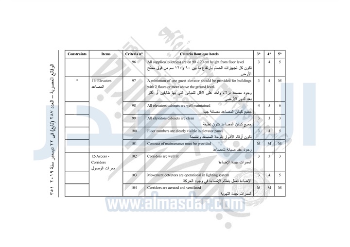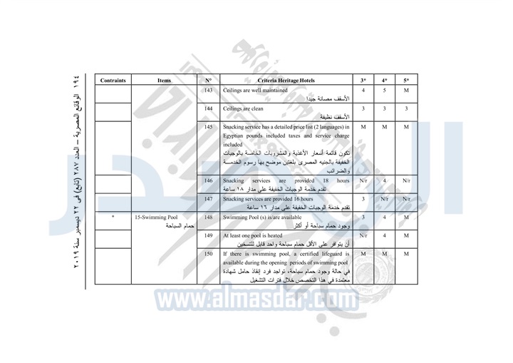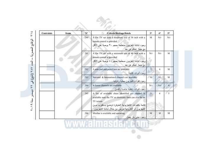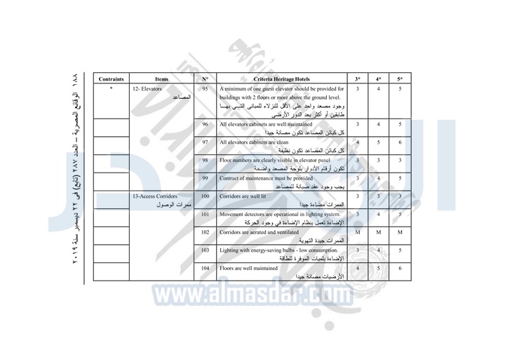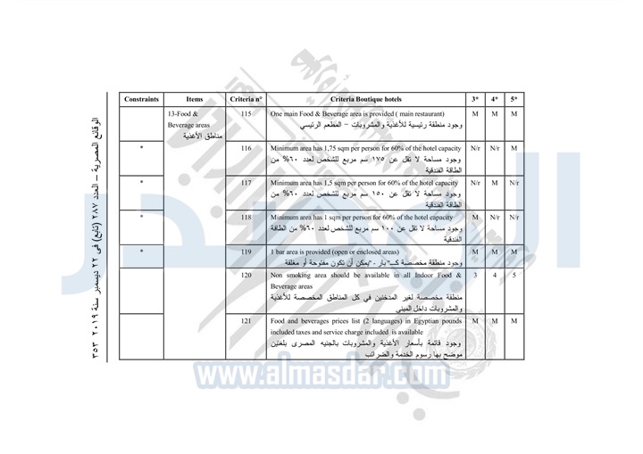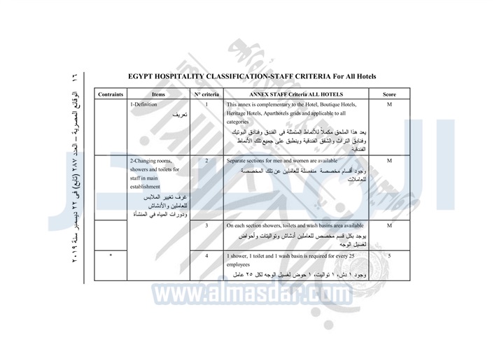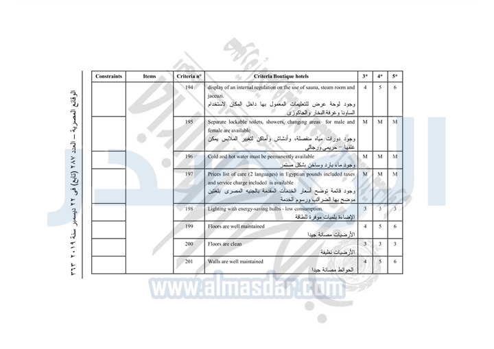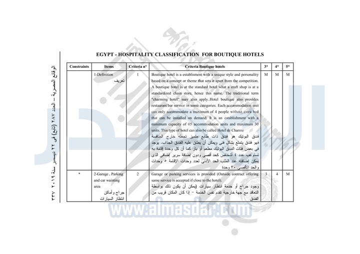 سياحة و طيران «السياحة» تصدر قواعد تصنيف المنشآت الفندقية الإثنين 17 فبراير 2020 - 06:14 م 2/17/2020 6:14:00 PM صورة أرشيفية المصدر - خاص طباعة شارك نشرت الوقائع المصرية في العدد رقم 287 تابع بتاريخ 22 ديسمبر 2019، قرار وزارة السياحة رقم 670 لسنة 2019، بشأن قواعد تصنيف المنشآت الفندقية (HC).وفيما يلي نص القرار: طباعة شارك تابع المصدر علي جوجل نيوز تطبيق نبض