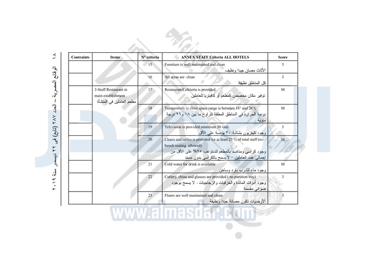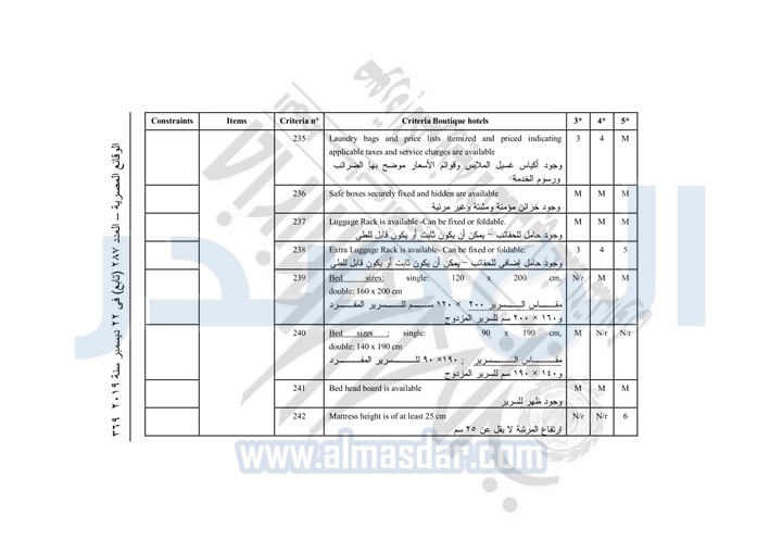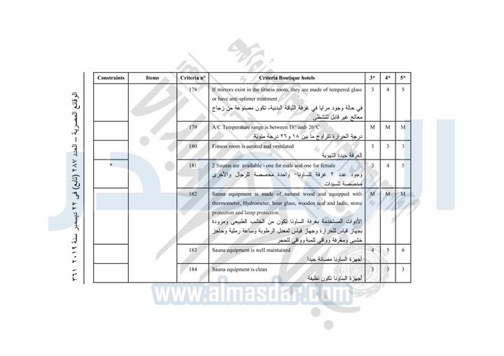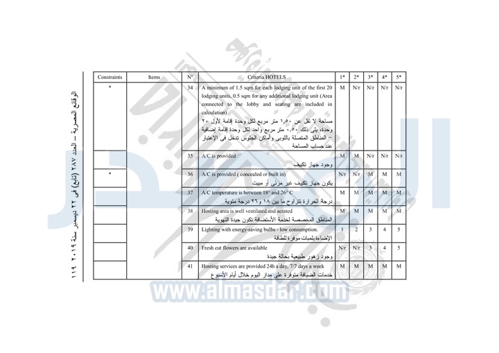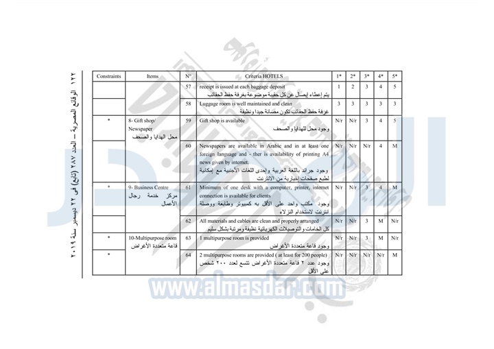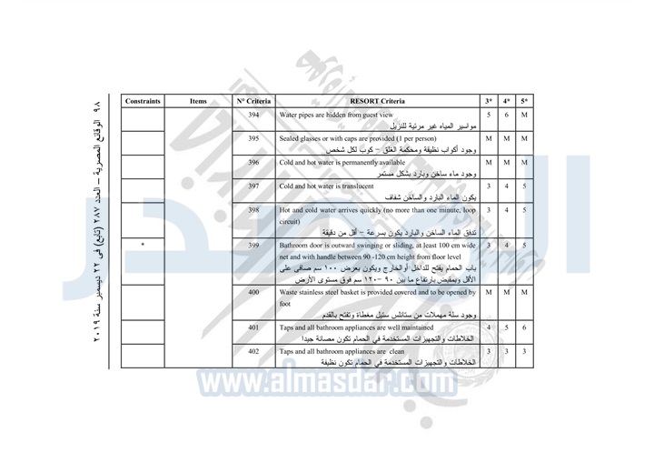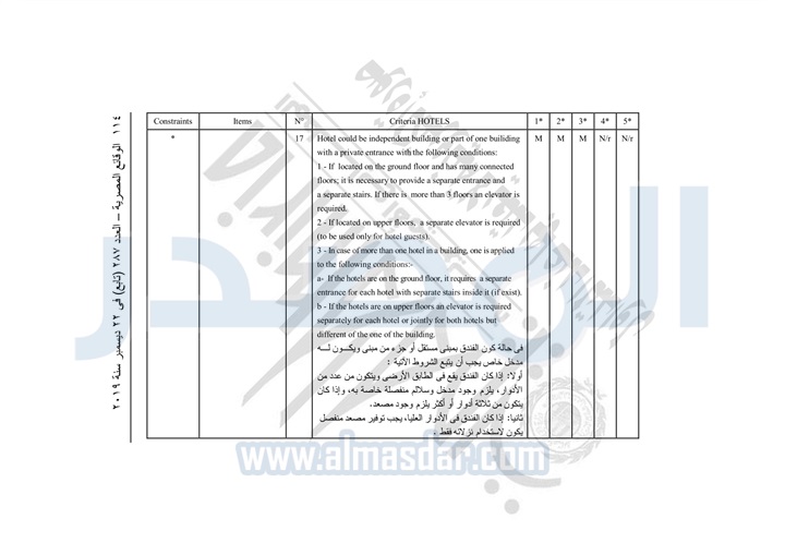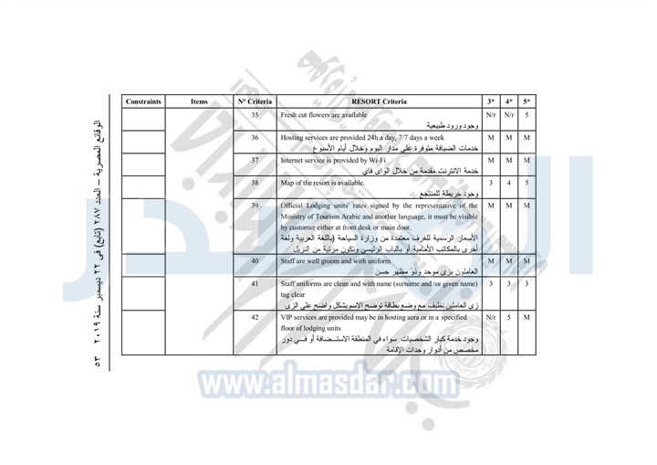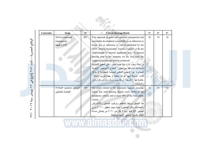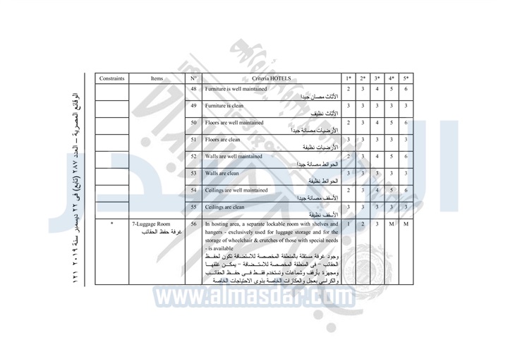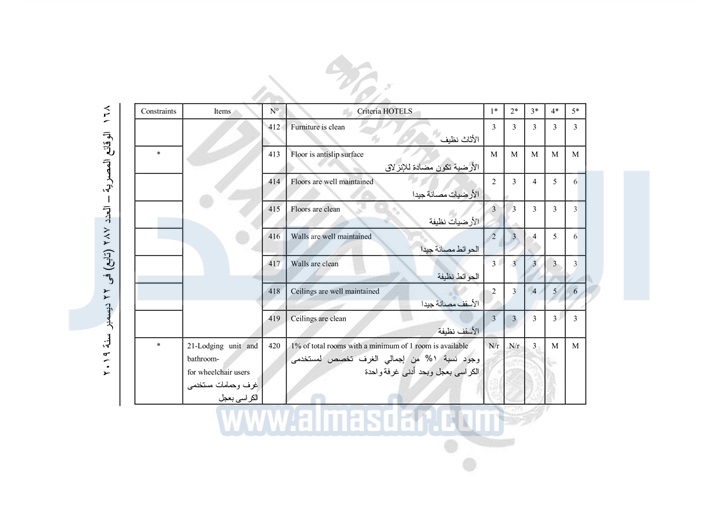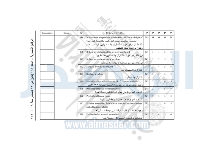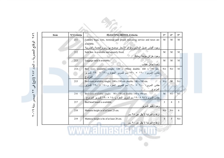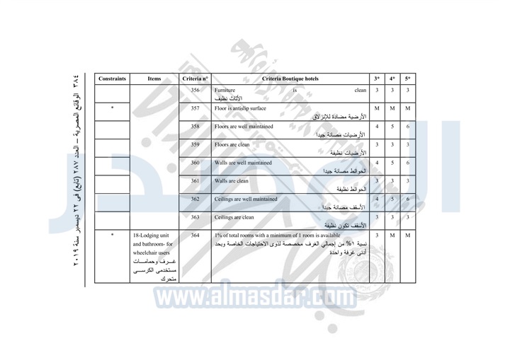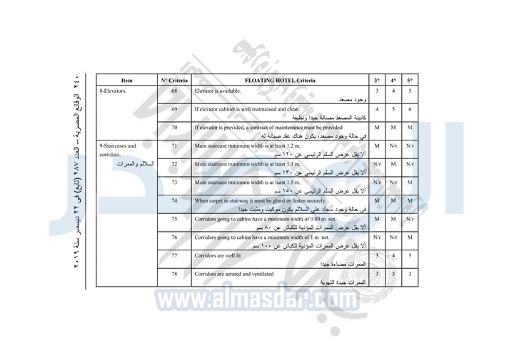 سياحة و طيران «السياحة» تصدر قواعد تصنيف المنشآت الفندقية الإثنين 17 فبراير 2020 - 06:14 م 2/17/2020 6:14:00 PM صورة أرشيفية المصدر - خاص طباعة شارك نشرت الوقائع المصرية في العدد رقم 287 تابع بتاريخ 22 ديسمبر 2019، قرار وزارة السياحة رقم 670 لسنة 2019، بشأن قواعد تصنيف المنشآت الفندقية (HC).وفيما يلي نص القرار: طباعة شارك تابع المصدر علي جوجل نيوز تطبيق نبض
