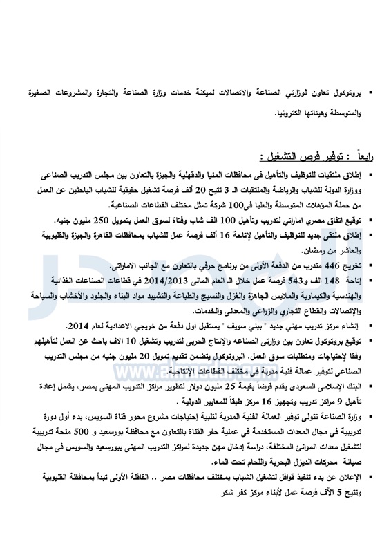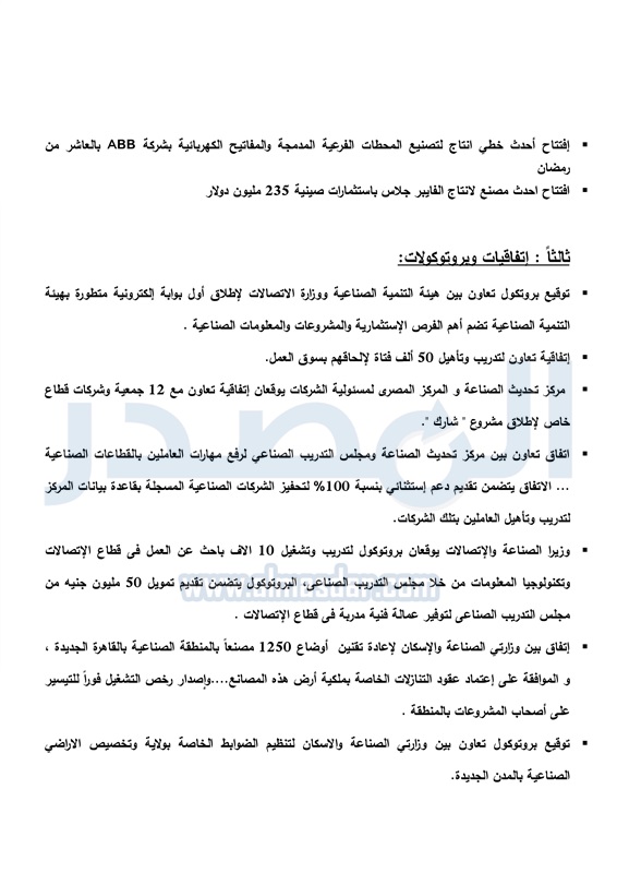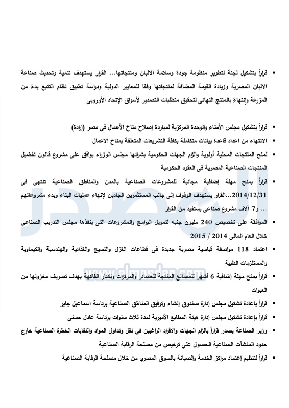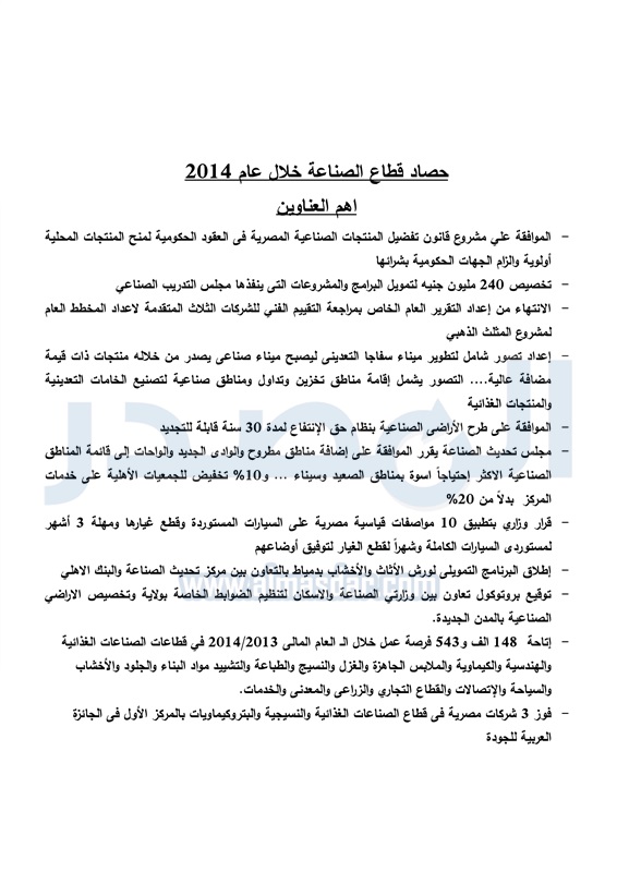 حصاد بروتوكولات تعاون "التجارة والصناعة" لعام 2014