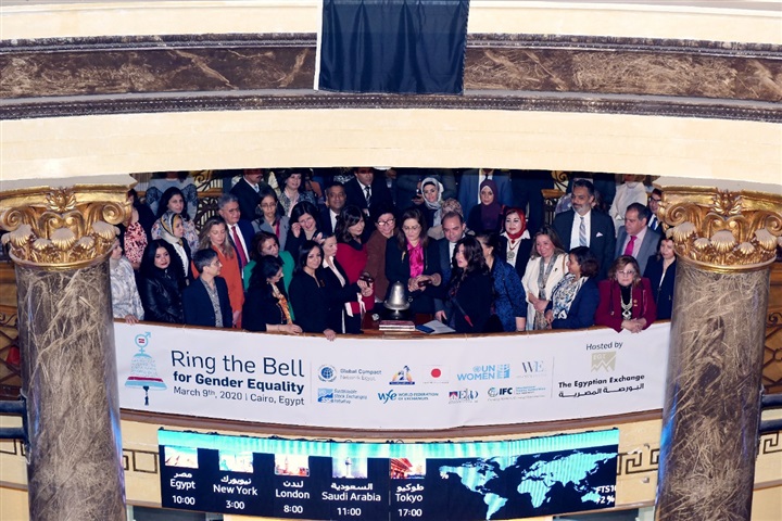 نظمت البورصة المصرية ، اليوم الاثنين 9 مارس ، بالتعاون مع مؤسسة التمويل الدولية، عضو مجموعة البنك الدولي، بالتعاون مع وهيئة الأمم المتحدة للمرأة ومركز المديرين المصري فعالية "قرع الأجراس من أجل المساواة بين الجنسين".