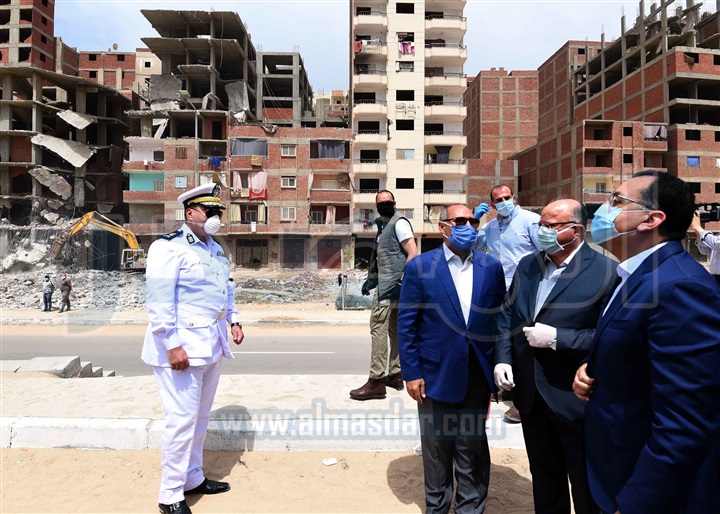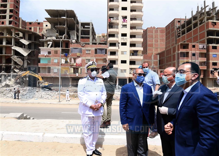 وخلال مرور رئيس الوزراء على المحور تصادف وجود أعمال إزالات للمباني المخالفة، فوجه رئيس الوزراء بإزالة كل هذه المخالفات بالكامل على الفور، كما شدّد على ضرورة إزالة جميع المباني المخالفة بالكامل وتسويتها بالأرض، وليس الاكتفاء بهدم عدد من الأعمدة، قائلاً للمحافظ: "أي مخالفة بناء تنزل على الأرض فوراً"، وتحول المخالفة للنيابة العسكرية، فلن نسمح بأي مخالفة بناء جديدة.